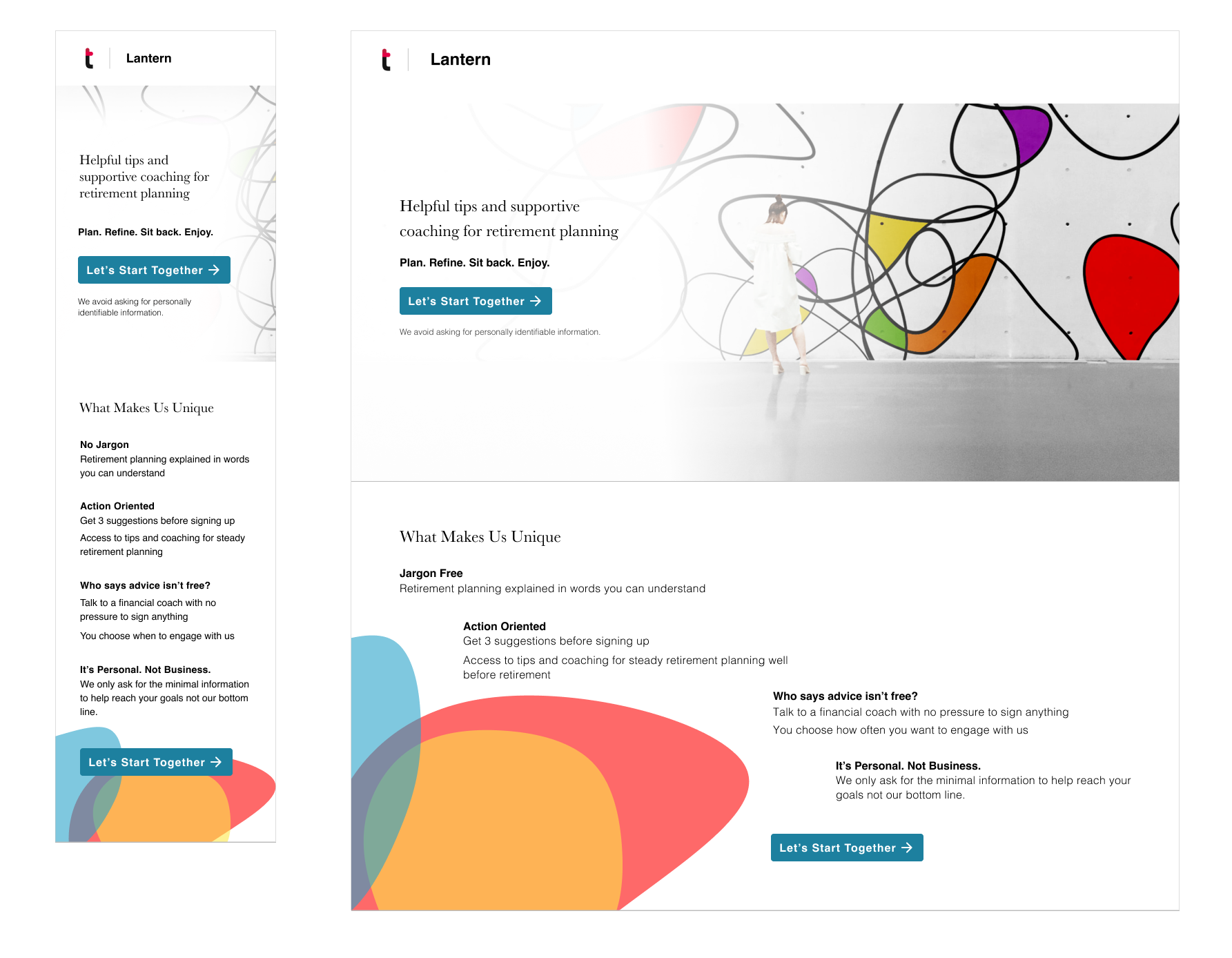Thrivent Financial is reimagining ways to help people plan for retirement. They want to offer free planning tools that help people understand, plan, invest and save for retirement. I lead UX design efforts in concepting and prototyping new planning tools. Our approach was to create a tool asking users a minimal set of questions to generate a basic retirement plan with tools and services to help customers continually improve their plan overtime.