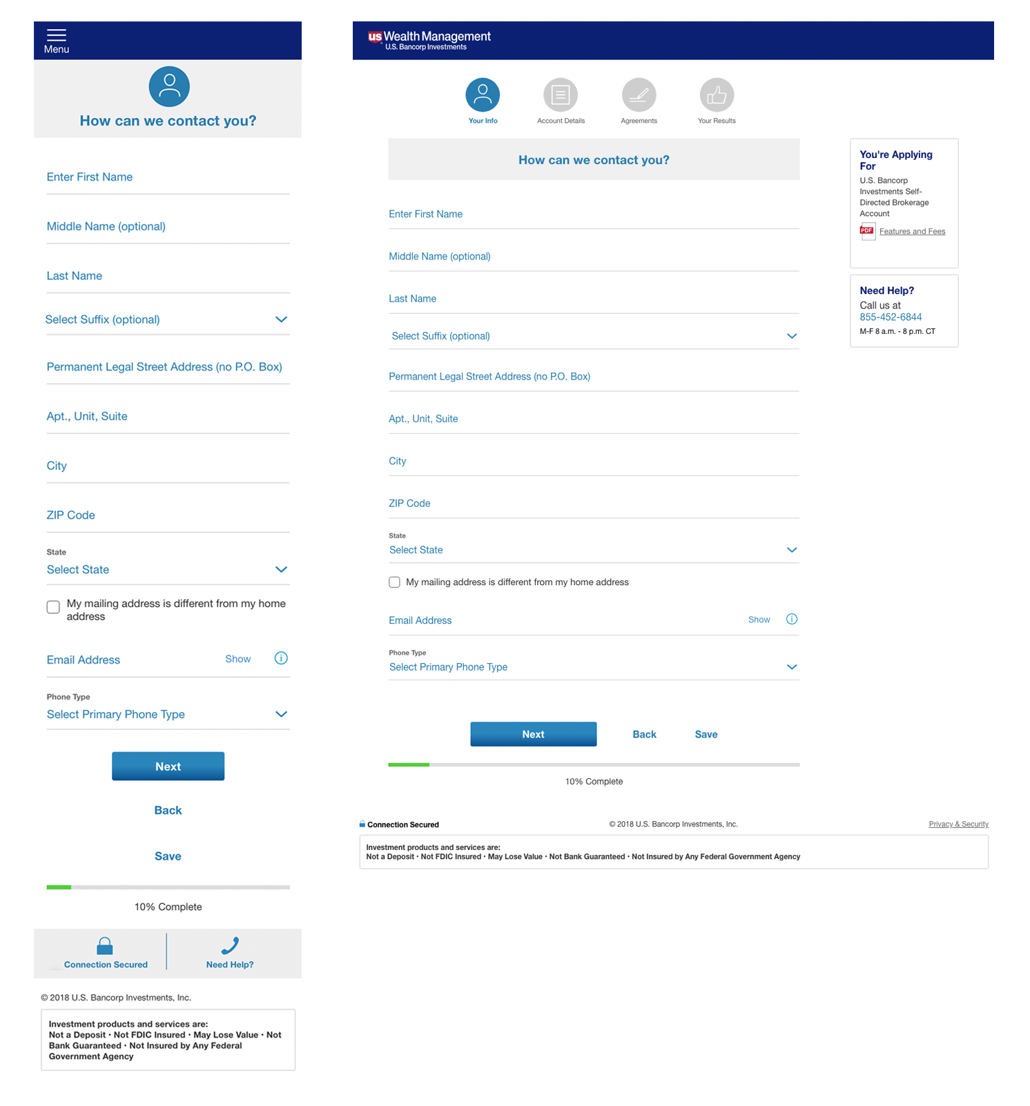 U.S. Bank Wealth Management redesigned several of their product applications by improving existing user flows and transforming applications to be responsive. I managed a UX team that redesigned 5 Wealth Management applications. My team consisted of a content writer, visual designer and interaction designer (at times in the projects I filled in as the interaction designer).
